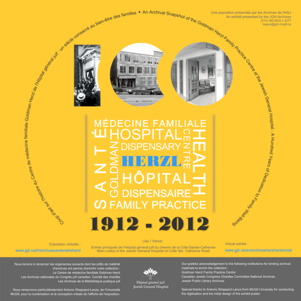 En 2012, le Centre de médecine familiale Herzl Goldman de l’Hôpital général juif fêtera son 100e anniversaire. L’exposition en cours présente des documents d’archives, des photographies et divers objets illustrant l’histoire médicale et culturelle du centre.